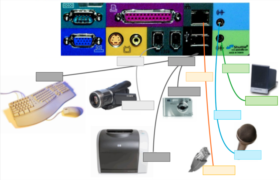 Ordne die Gerätenamen und die Bezeichnungen der Schnittstellen richtig zu.