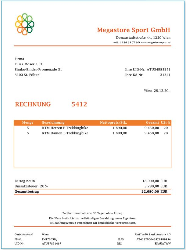 Das Belegdatum entspricht dem Buchungsdatum.