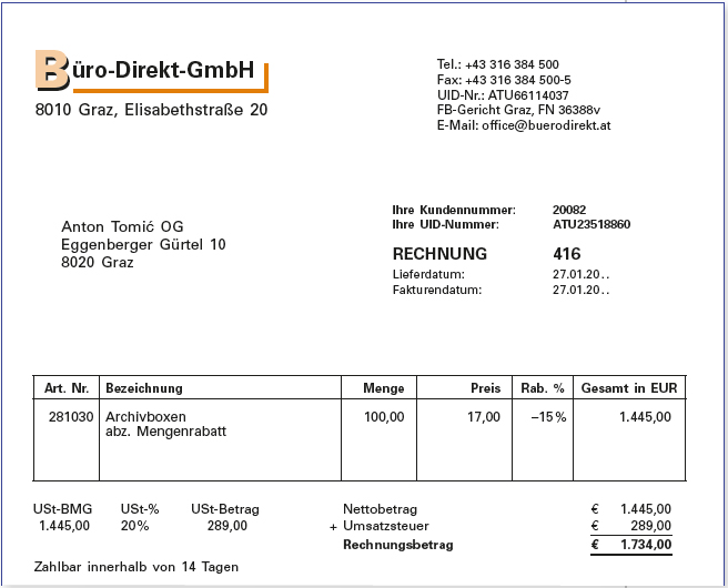 Die Büro-Direkt-GmbH ist ein Großhändler, der Büroartikel im 24-Stunden-Service liefert. Im Jänner ergeben sich u. a. folgende Geschäftsfälle:
